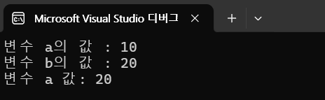 printf("일반 변수 - a: %d, b: %d\n", a, b);