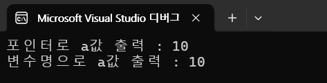 printf("변수 a 값: %d\n", *pa); // 포인터를 간접 참조해 바뀐 a값 출력