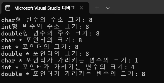 printf("double * 포인터가 가리키는 변수의 크기: %d\n", sizeof(*pd));